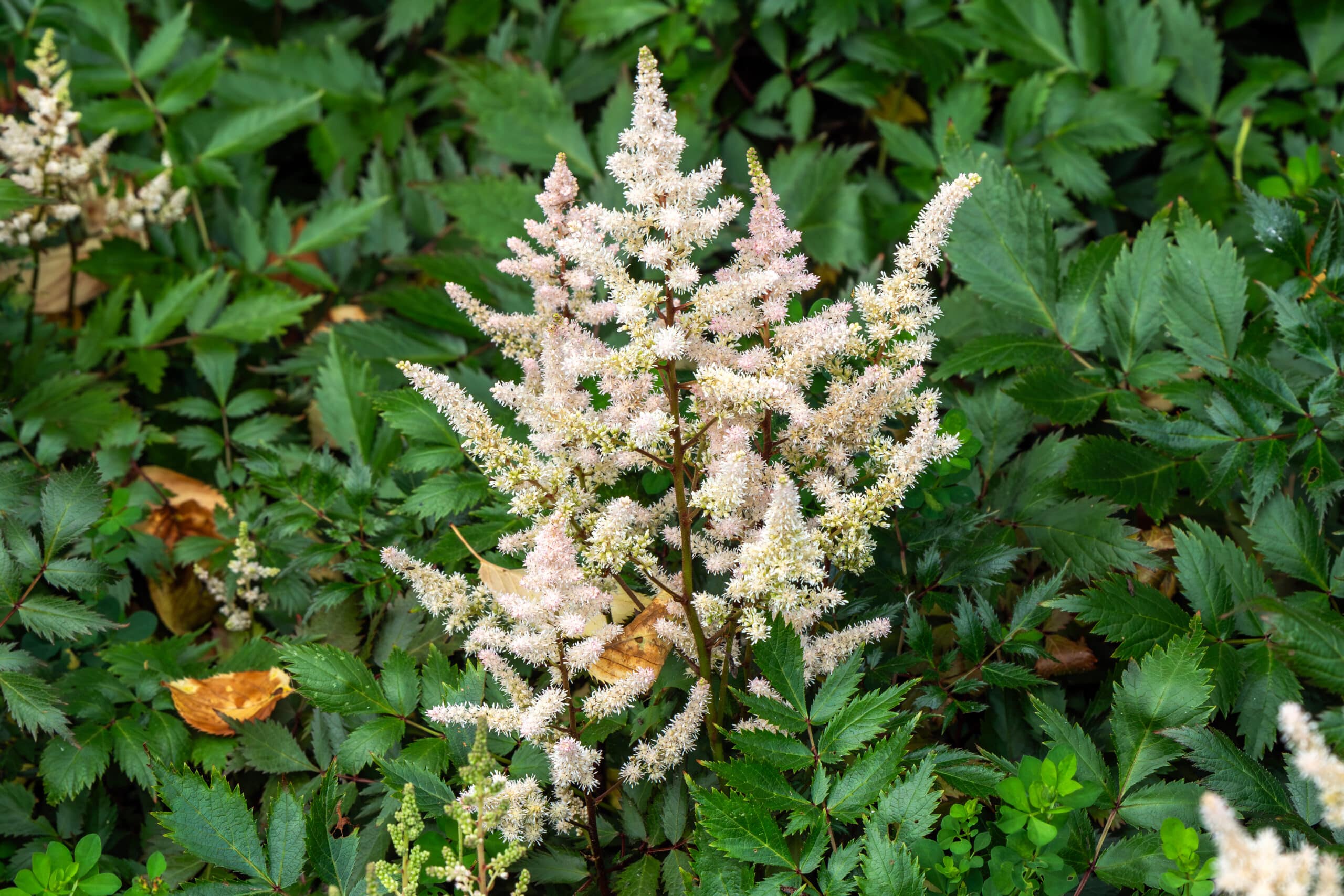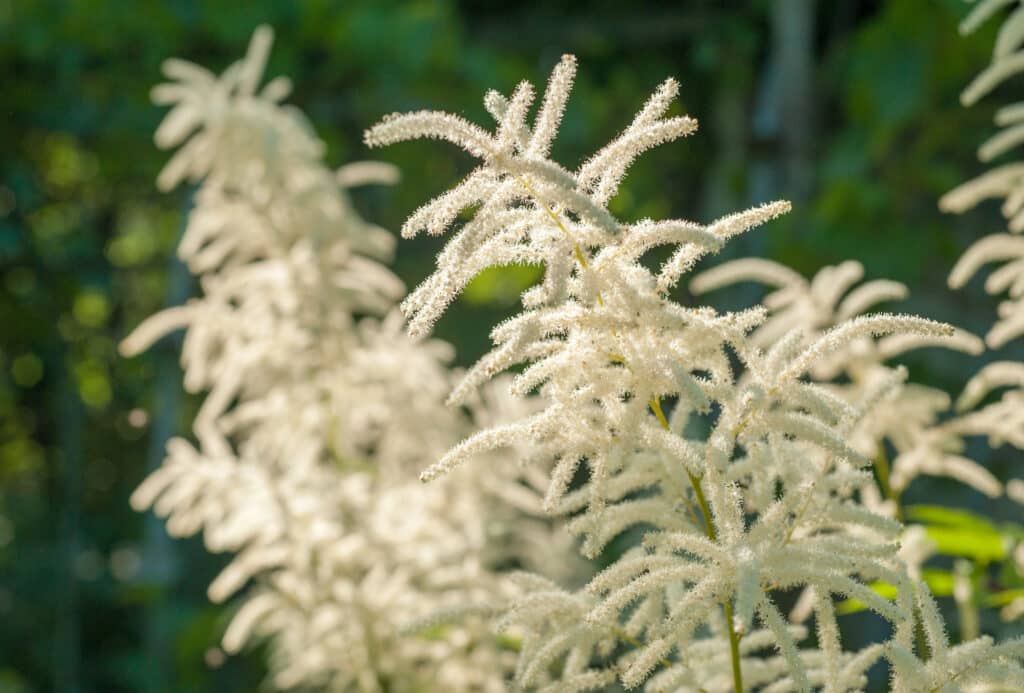 Bright white blooms: Feathery flower plumes add contrast in shade