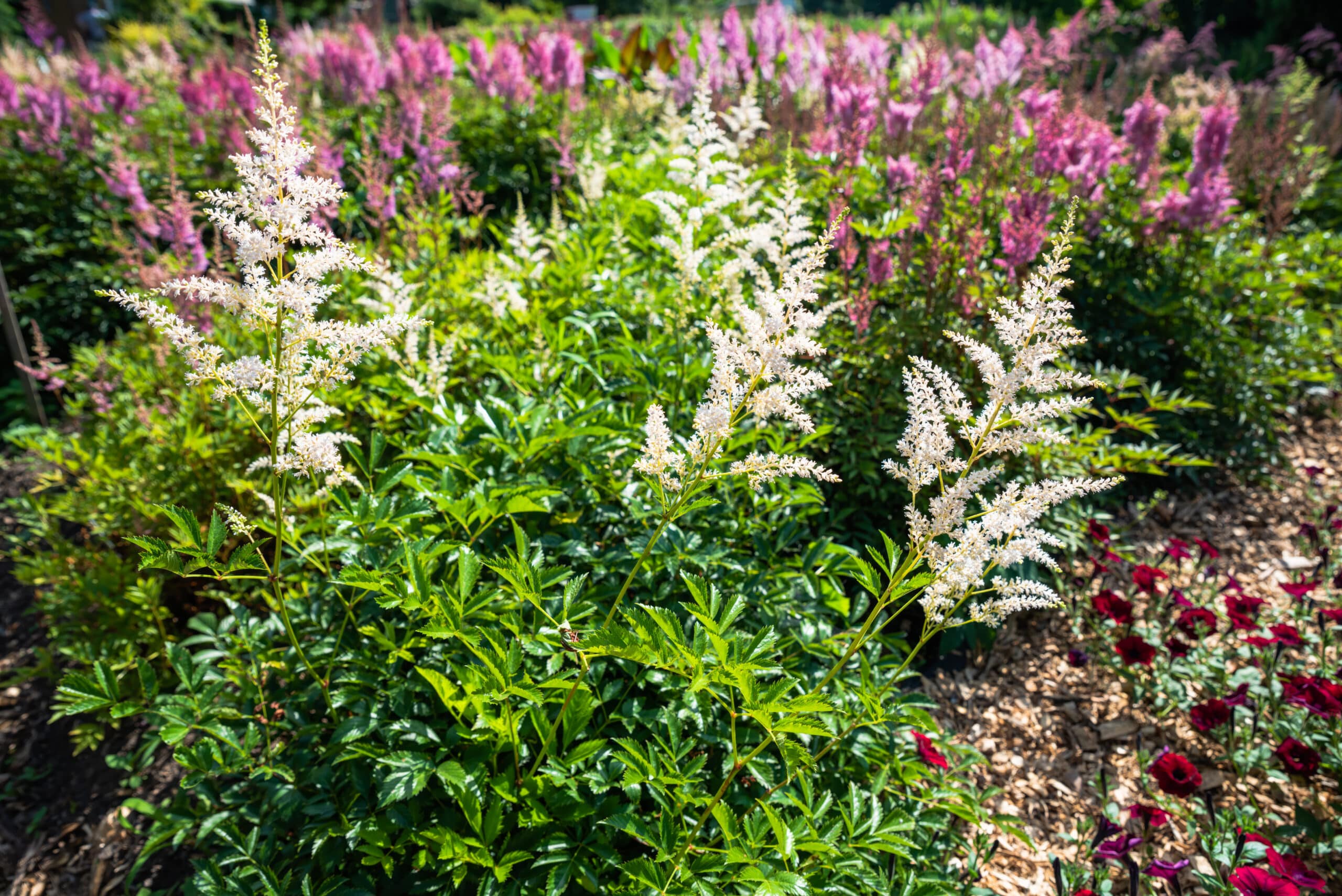 Graceful shade perennial with arching white flower plumes in early summer. Thrives in moist soils and adds elegance to woodland and shade gardens.